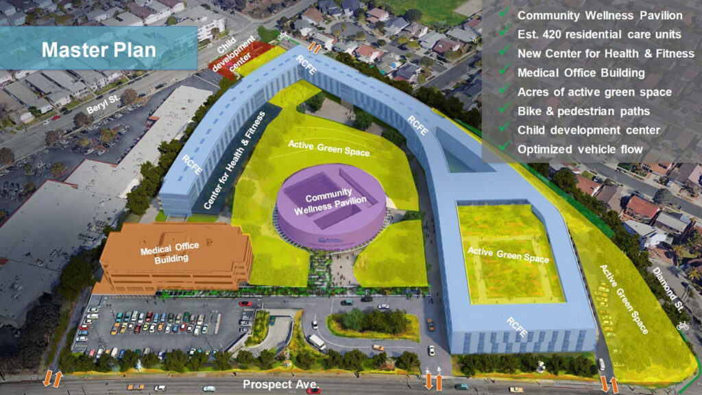 In collaboration with Beach Cities Health District (BCHD), we spent three years reimagining the former South Bay Hospital campus in Redondo Beach. The campus shifted from medical offices to a preventative care-focused facility with a focus on “Healthy Living.” The two-phased master plan replaced the hospital’s central plant and parking structure with 420 assisted living units, a child development center, a center for health and fitness and green open space. The second phase will introduce a community wellness pavilion with flexible presentation and community meeting spaces, a demonstration kitchen and garden and more.