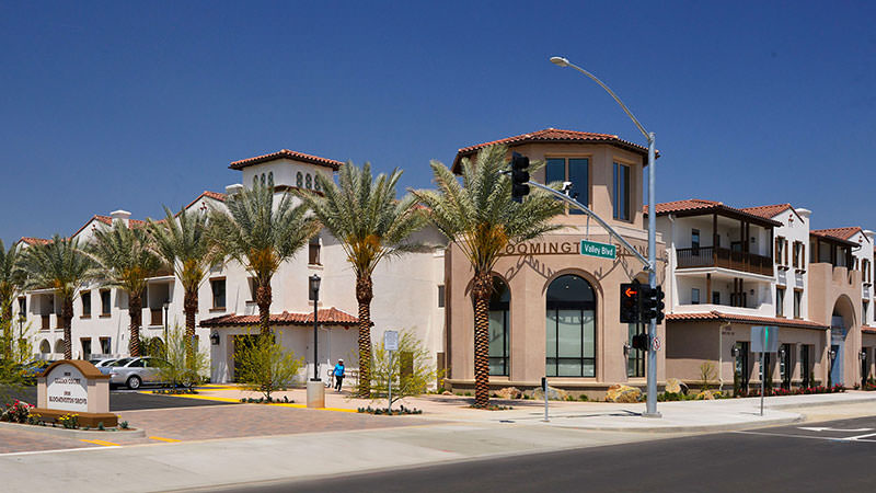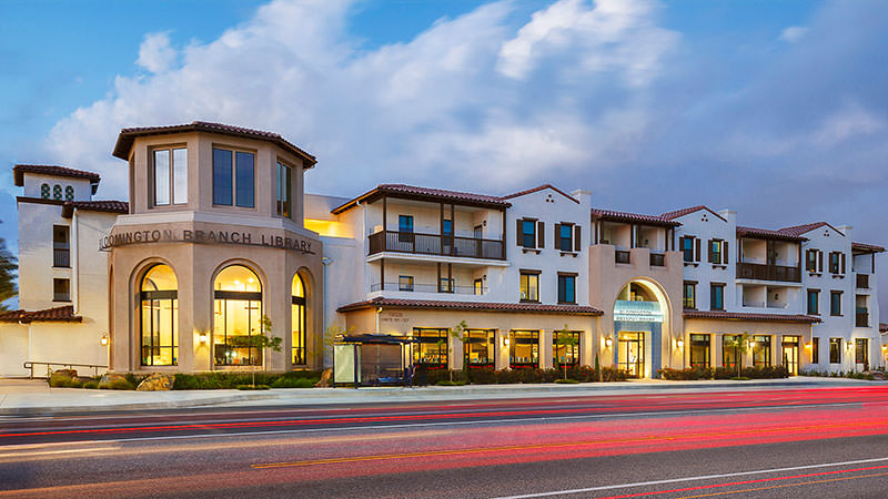 Located in a redevelopment area in an unincorporated area of San Bernardino County, the residentially anchored mixed use community is designed to catalyze change in the area. The intergenerational residential development, built on nine acres of County land, includes affordable senior and family housing at Bloomington Grove and Lillian Court respectively, as well as the new Bloomington Branch Library, social services and recreational areas.
