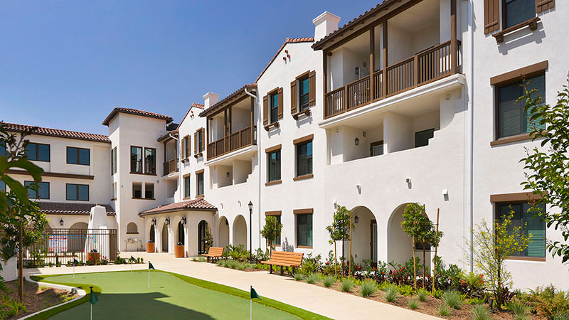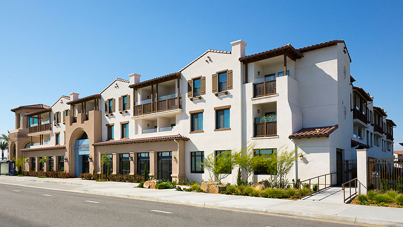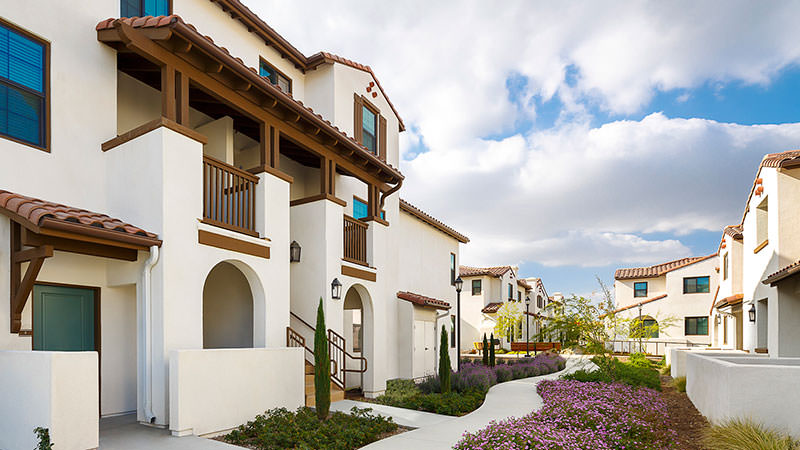 The architecture of the community – California Mission style featuring stucco walls, balconies, shutters and classic red roofs – recalls the original vernacular architecture of the region. Environmentally friendly, the entire development uses California drought-tolerant materials and has open spaces with meandering pathways. Achieving the successful integration of the mix of public social uses and housing for multiple generations on a single site was key to community acceptance and to the ultimate revitalization of the former industrial district.