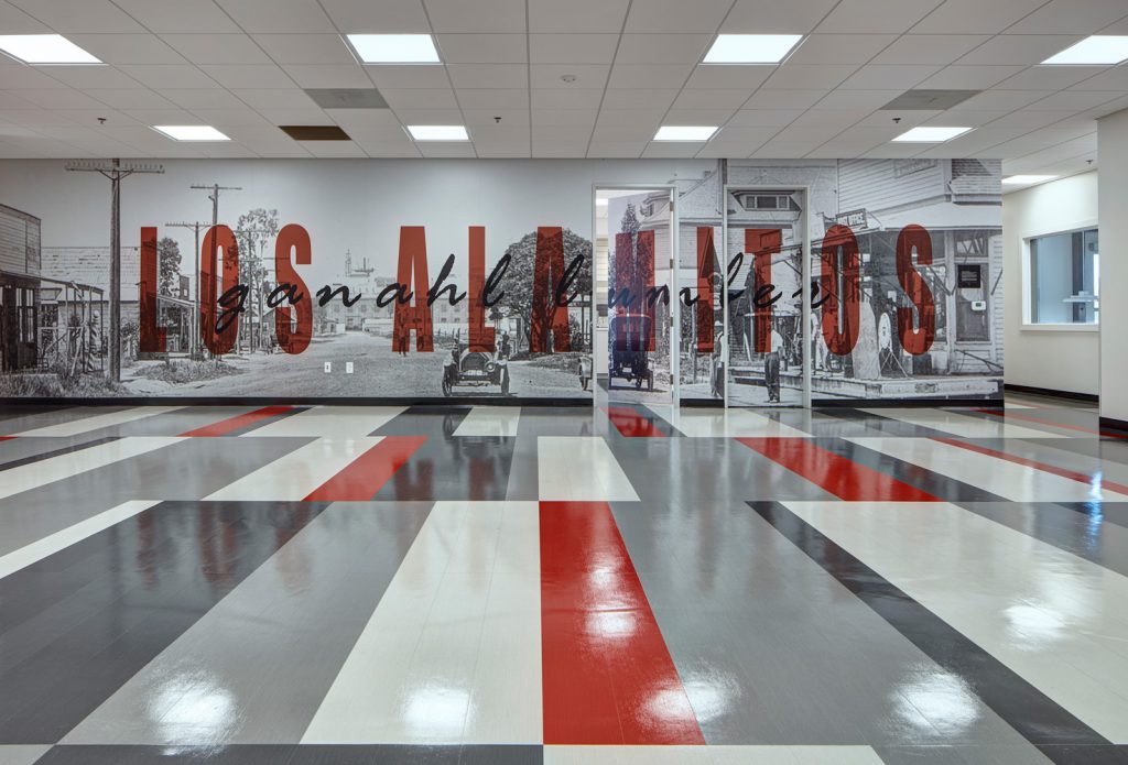 Fresh finishes and materials including the thoughtful use of woods, reclaimed oak on the front desk, and a distinctive red and grey palette, reflect Ganahl’s brand vocabulary. A comprehensive new graphics program was designed around the company’s rich history in the South Bay and Orange County. Vintage photos of the surrounding communities, found in Ganahl’s archives as well as the historical museum, enliven the store and administrative area with a unique sense of place and time. As part of their scope of work, the interior design team established photography and graphic standards for the company.