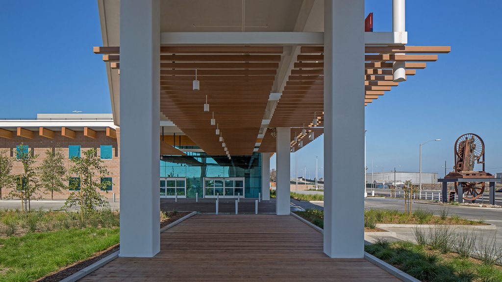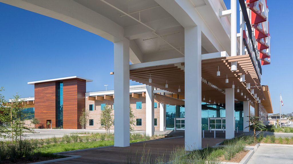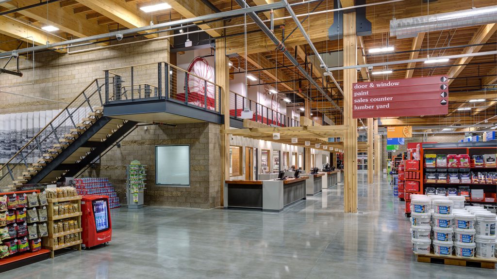 The new 18-acre yard in Torrance with 225,000 square feet of new buildings includes a retail store, will call storage and loading area, operations offices and two mezzanines. Using a composite design, the wood frame structure supports a concrete slab to provide for rooftop parking.