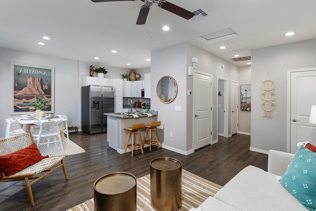Hillstone Residences at Canyon Trails is a groundbreaking build to rent community. Offering 240 units with 1 to 3 bedrooms, the project prioritizes maintenance-free living with the benefit of single family communities. Fenced backyards with artificial turf and a doggie door is ideal for pets and families. The community is connected by trails, green spaces, parks as well as the community clubhouse. This project redefines modern living and sets new standards for build to rent communities.