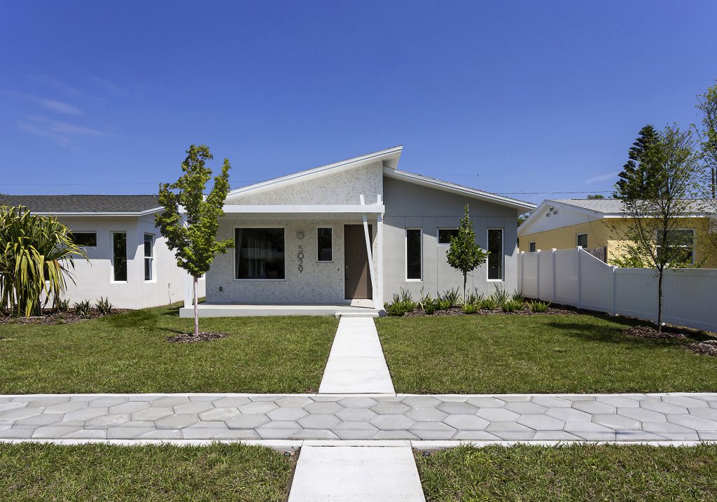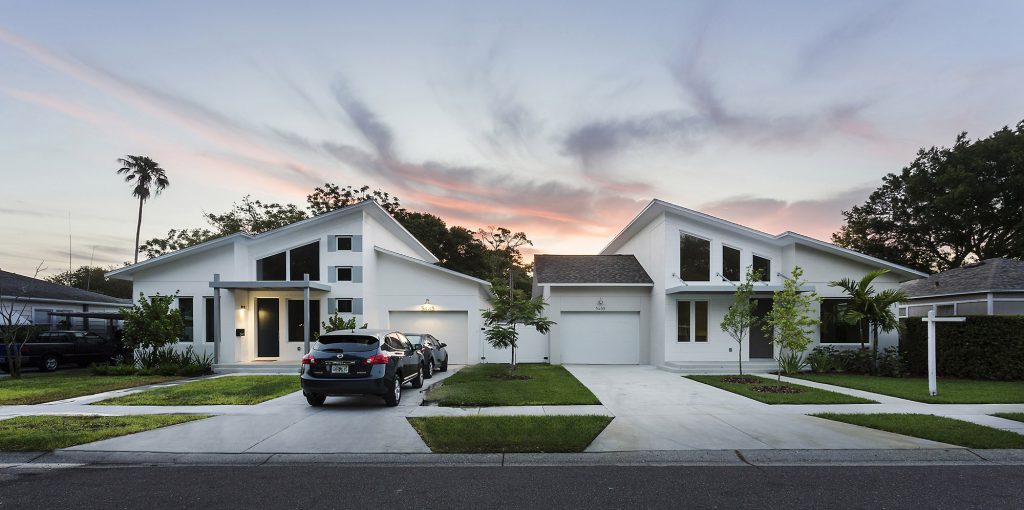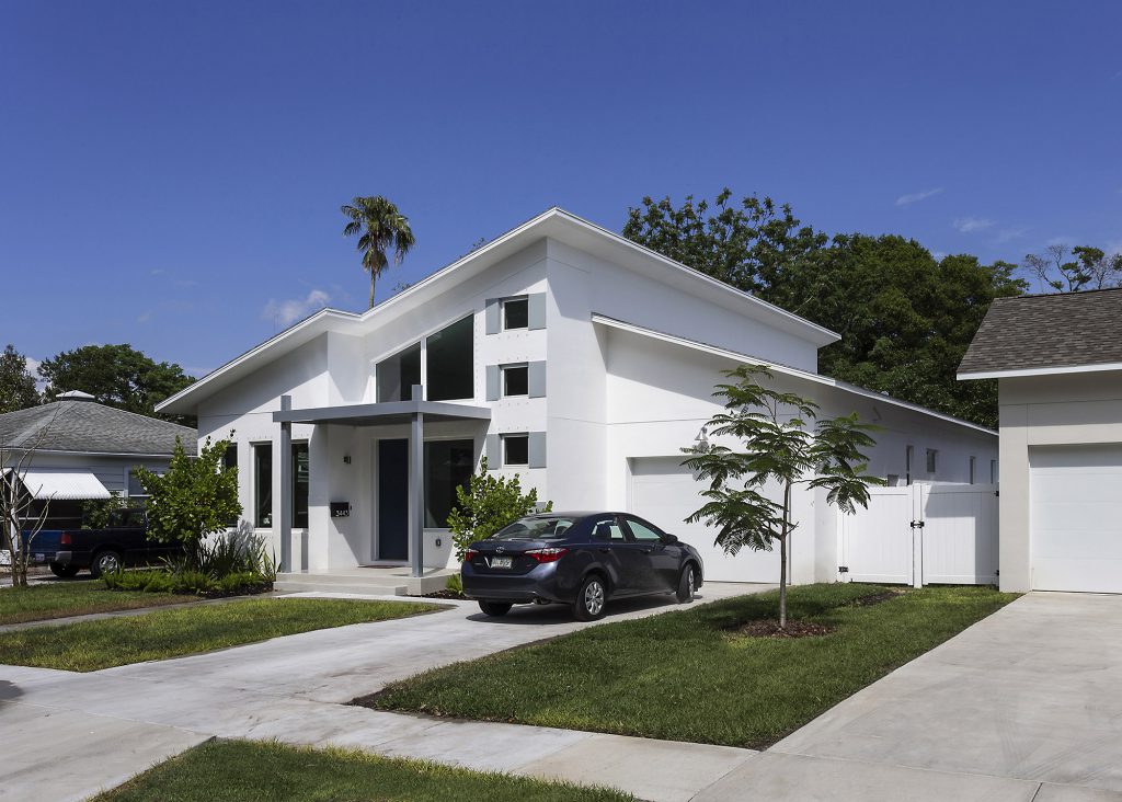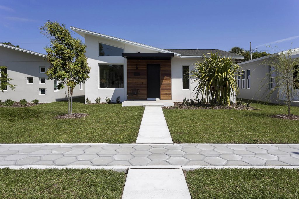 This line of lot-specific infill homes features clean lines and angles and unique window patterns that achieve a modern look. Elevations use contemporary materials like concrete block and metal awnings alongside more traditional cladding, including natural wood siding and textured stucco. Several of these single-story plans make creative use of their shed roof angles by vaulting ceilings and using high, fixed glass to infuse interiors with more natural light. Homes offer one- and two-car garages, either front or rear load depending on lot orientation.